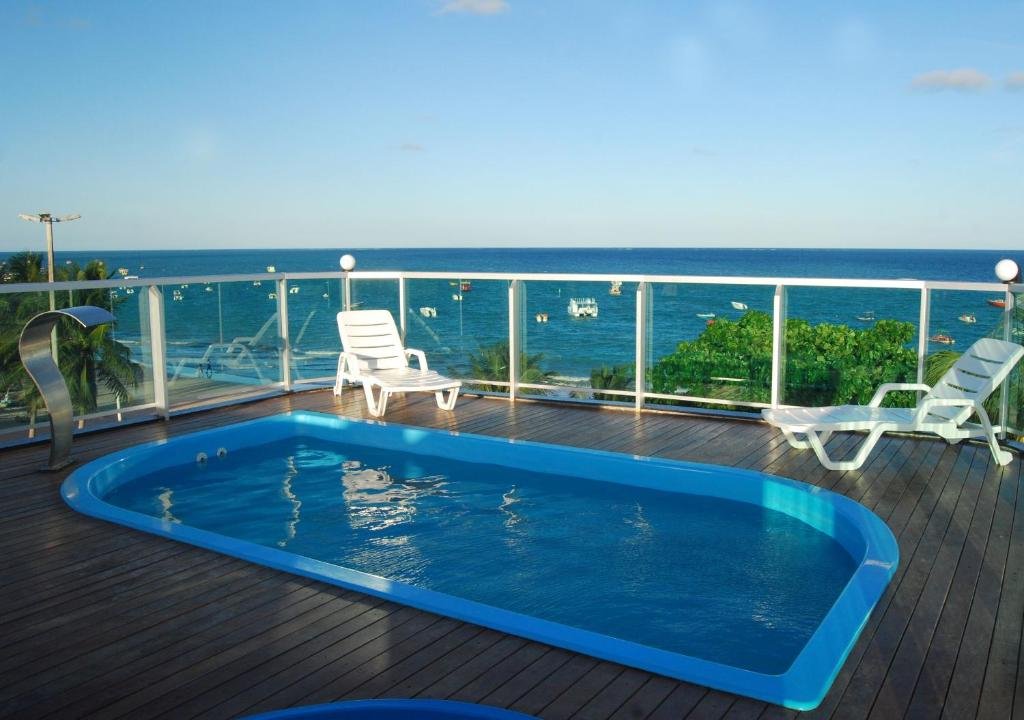 O hotel conta com piscina à beira-mar, bar, restaurante, área de lazer e serviço de praia com espreguiçadeiras e guarda-sóis.