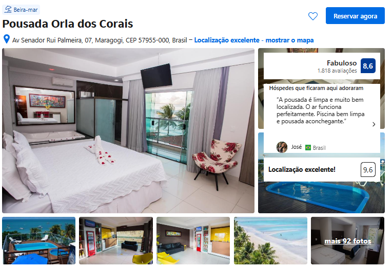 - Em termos de preço médio, dependendo da temporada e tipo de quarto, é possível encontrar diárias mais acessíveis do que resorts de luxo na região — o que torna a pousada uma excelente opção para quem quer economizar um pouco.